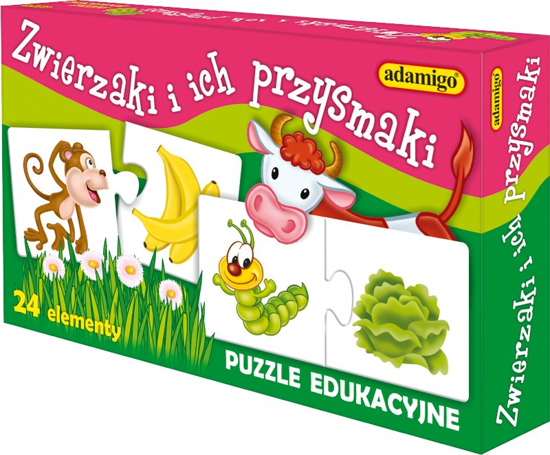 ADAMIGO Puzzle dvojice Zvířátka a jejich pochoutky 12x2 dílky