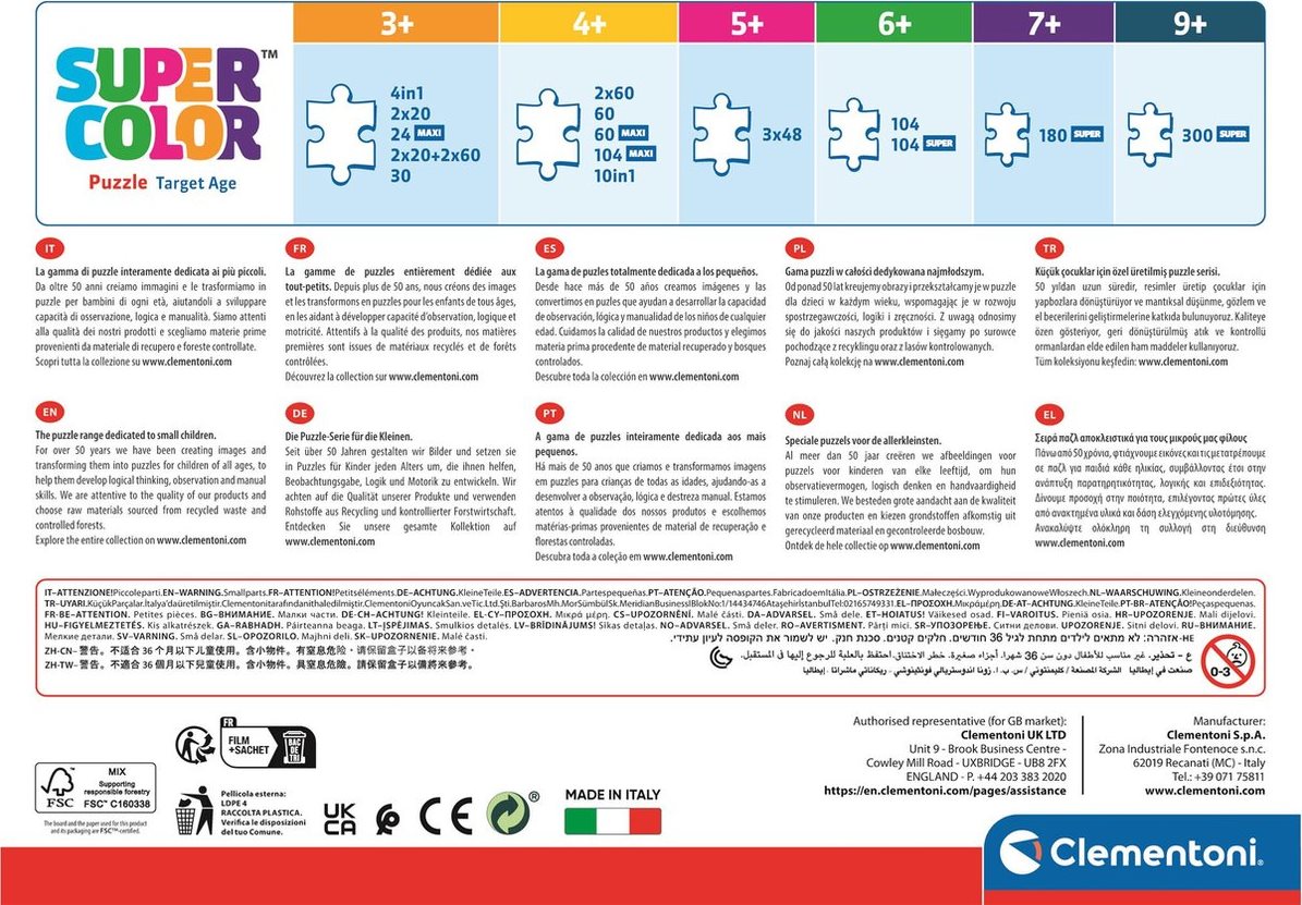 Dětské puzzle SuperColor Collection - edice navržená speciálně pro děti, pomáhá jim rozvíjet manuální zručnost a schopnost pozorování. Kvalita materiálů a exkluzivní technika tisku zaručují trvale krásné, živé a zářivé barvy.