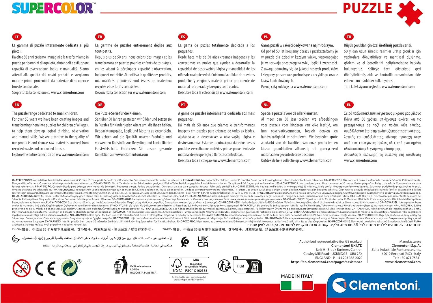 Dětské puzzle SuperColor Collection - edice navržená speciálně pro děti, pomáhá jim rozvíjet manuální zručnost a schopnost pozorování. Kvalita materiálů a exkluzivní technika tisku zaručují trvale krásné, živé a zářivé barvy.