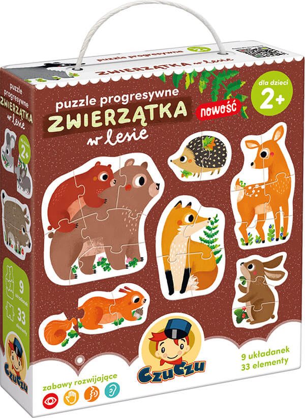 Progresívní puzzle pro první skládání pro děti již od 2 let od výrobce CZUCZU devět různých obrysových motivů Progresivní dílky Rozvoj manuální zručnosti, koordinace i prostorové orientace Baleno v krabičce s ouškem pro přenášení