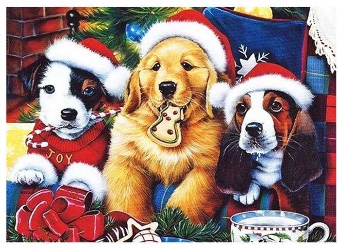 Diamantové malování Norimpex 40x30 cm Pejsci o Vánocích