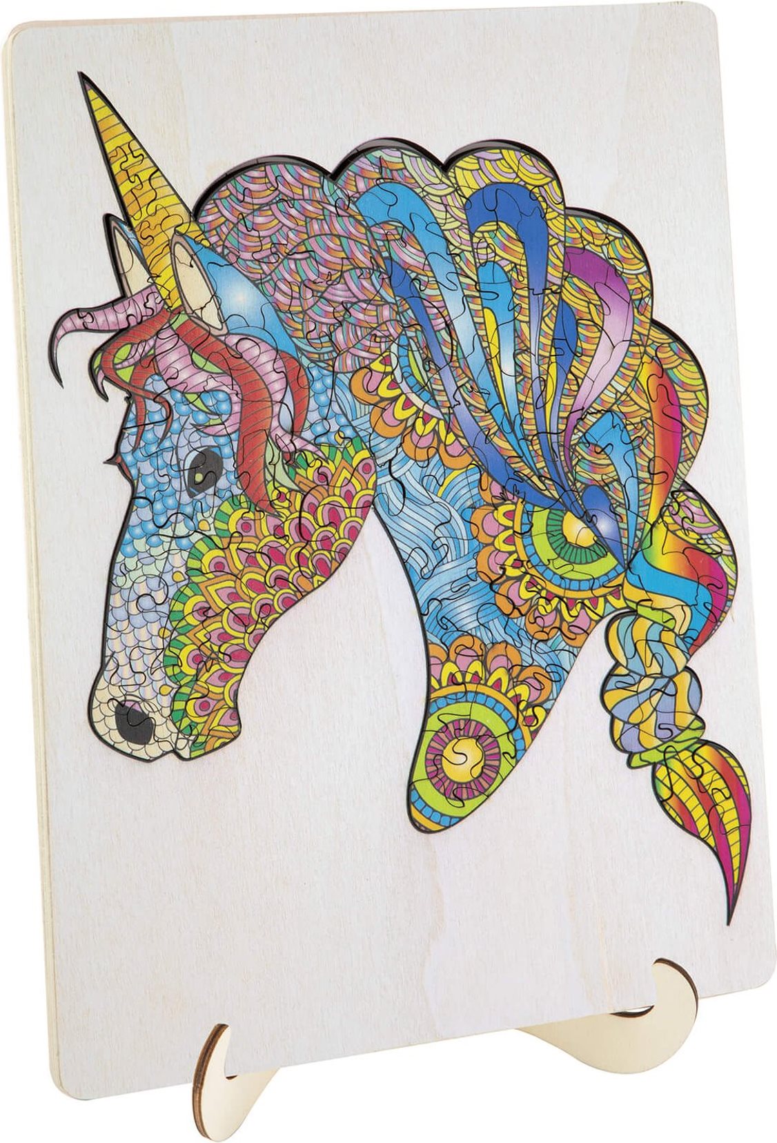 Drevené puzzle Moxy so stojanom Jednorožec 137 dielikov