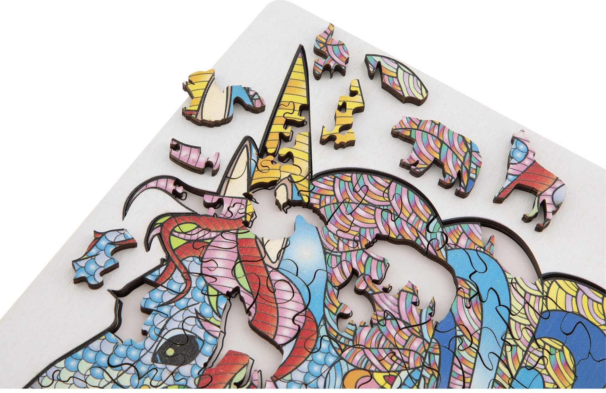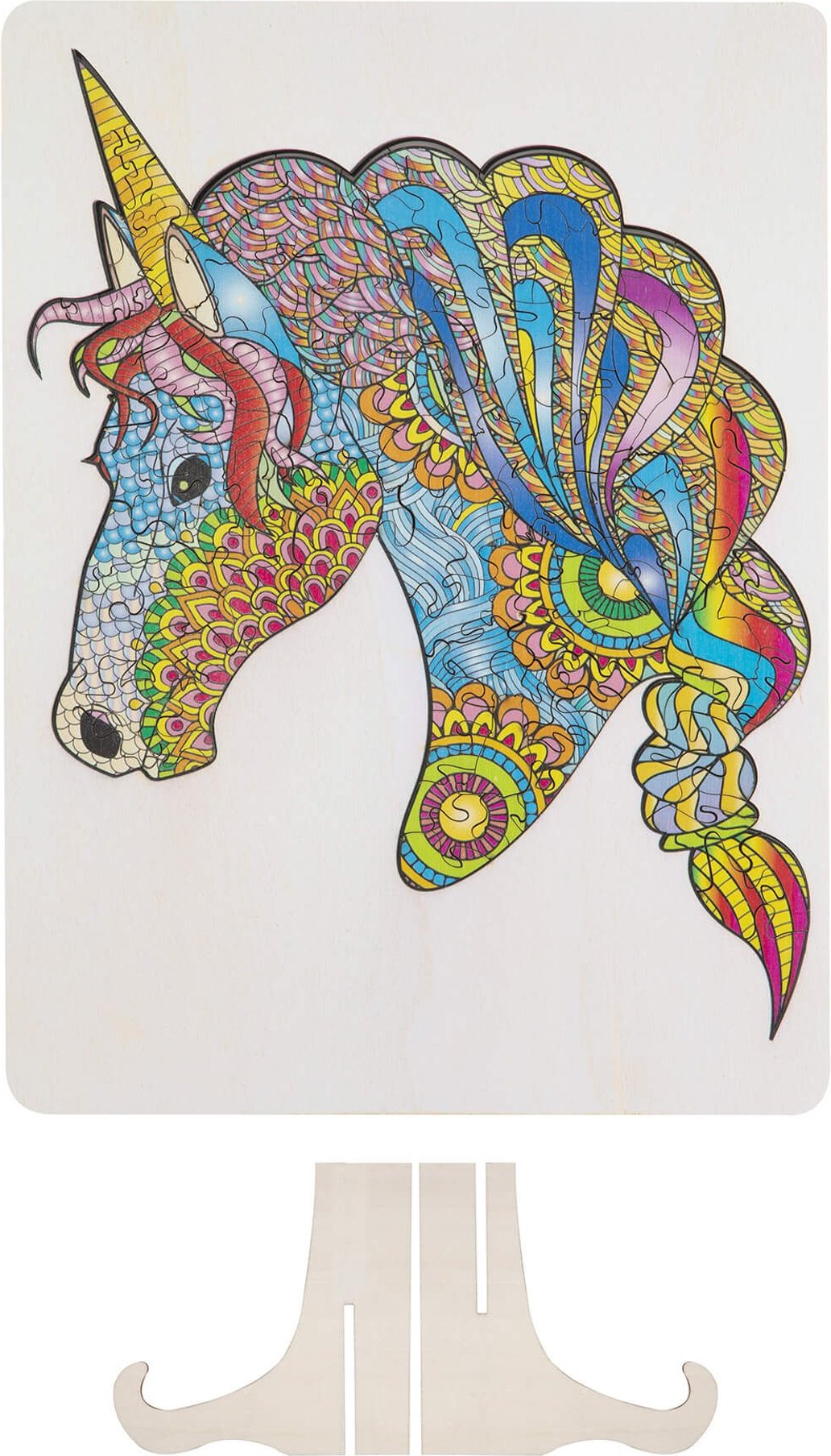 Dřevěné puzzle Moxy se stojánkem Jednorožec 137 dílků