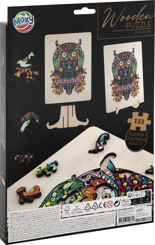 Dřevěné puzzle Moxy se stojánkem Sova 133 dílků