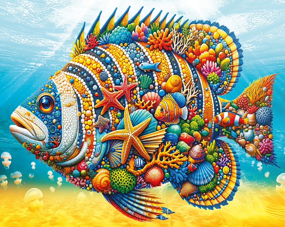 Dřevěné puzzle WOODEN CITY 150 dílků Zdobená ryba