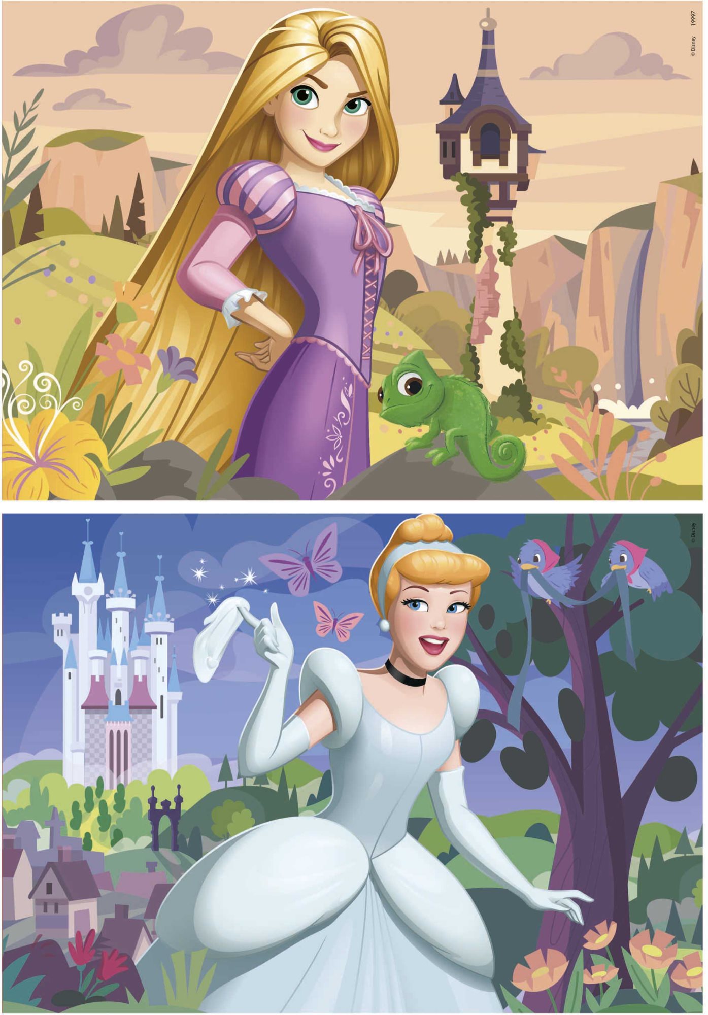 Puzzle pro děti od španělské firmy EDUCA Balení obsahuje dvě puzzle se stejným počtem dílků a stejným rozměrem Motivy Disney princezen Lociky a Popelky