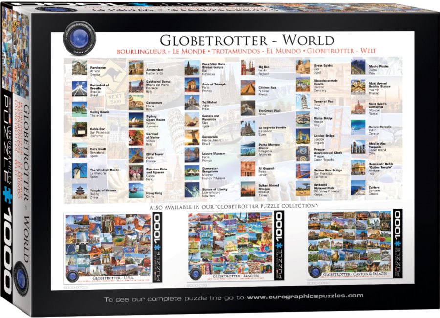 Puzzle EUROGRAPHICS z kolekce Globetrotter Collection (Světoběžník). Více než 40 nejznámějších míst celého světa s podrobným popisem na zadní straně krabičky (v angličtině). Raznice puzzle EUROGRAPHICS…