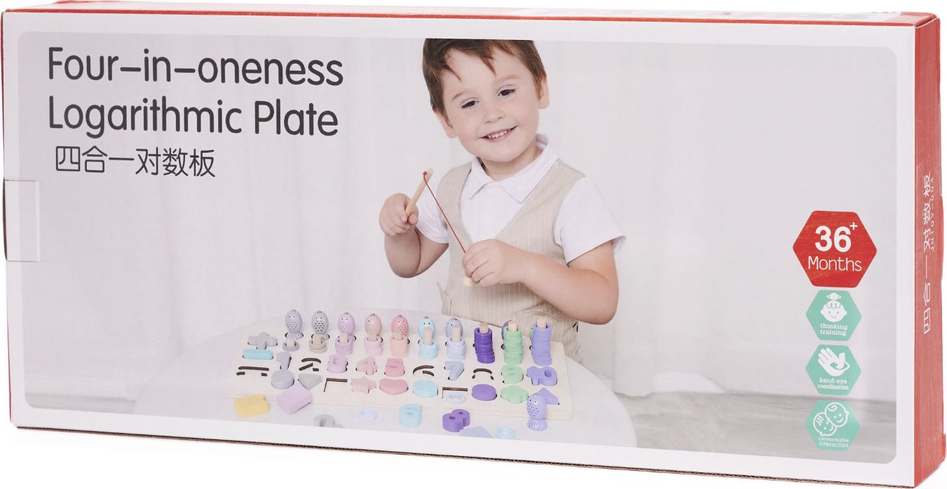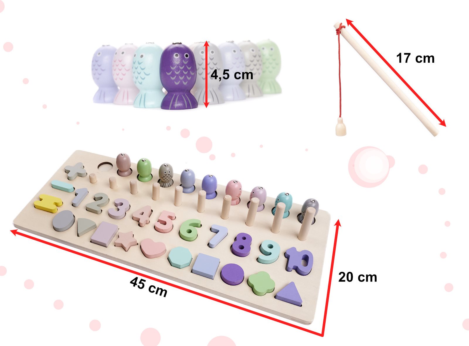 KIK Dřevěná vkládačka s tvary, čísly a lovením rybek 3v1