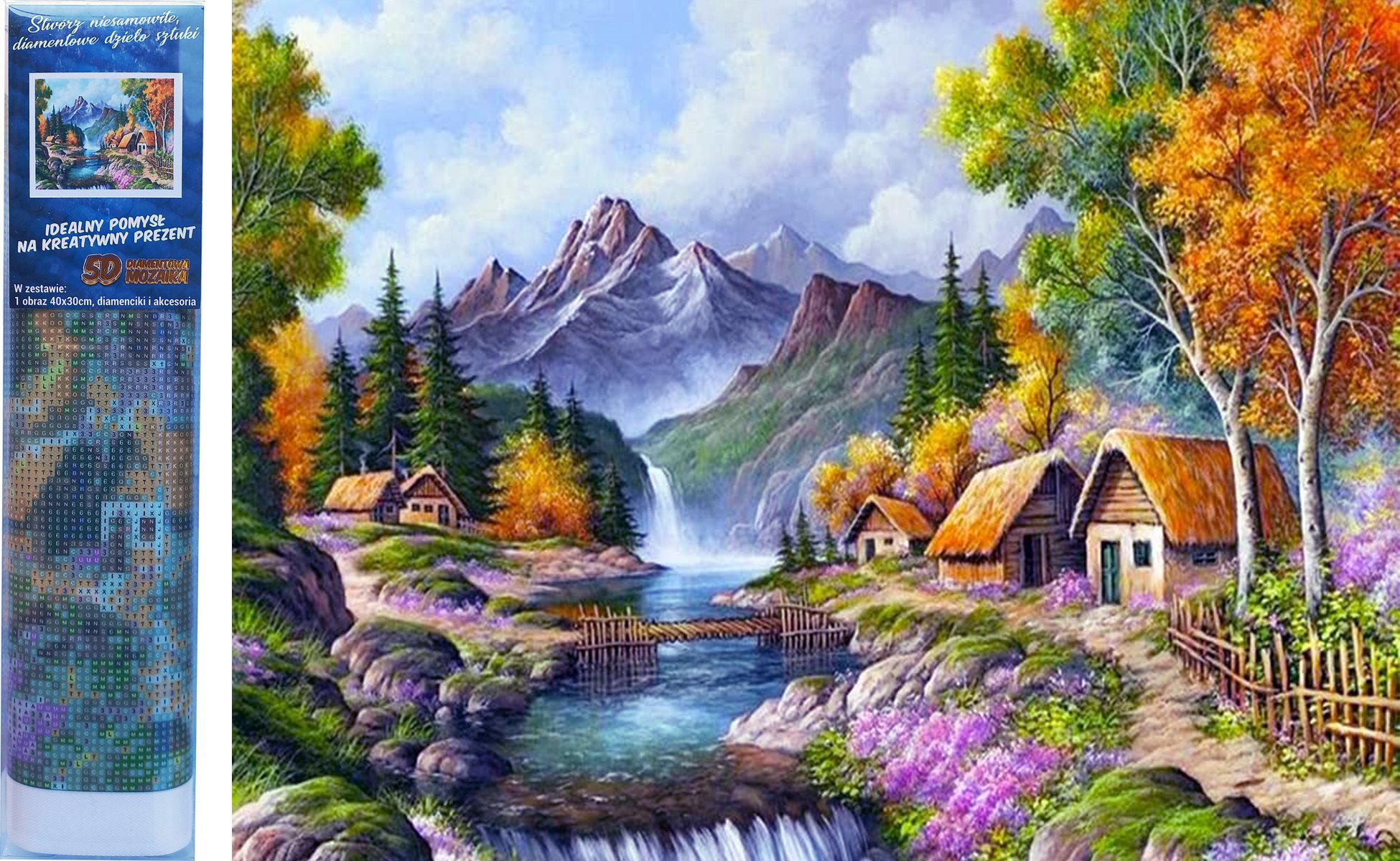 NORIMPEX Diamantové malování Chaty u horské řeky 40x30cm