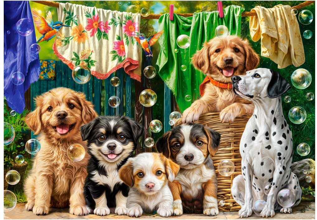 Puzzle Castorland 500 dílků Štěňata, prádlo a ptačí dovádění