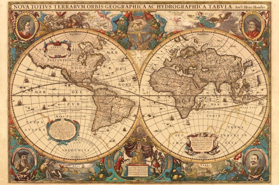 Puzzle zobrazující starobylou mapu světa tak, jak ji v roce 1930 namaloval holandský zeměpisec Hendrik Hondius.
