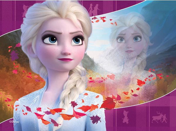 Čtyři puzzle s různou obtížností od 12 do 24 dílků s motivy animovaných hrdinů filmu Ledové království 2. Doporučeno pro děti od 3 let.