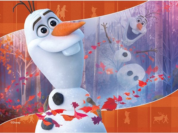 Čtyři puzzle s různou obtížností od 12 do 24 dílků s motivy animovaných hrdinů filmu Ledové království 2.