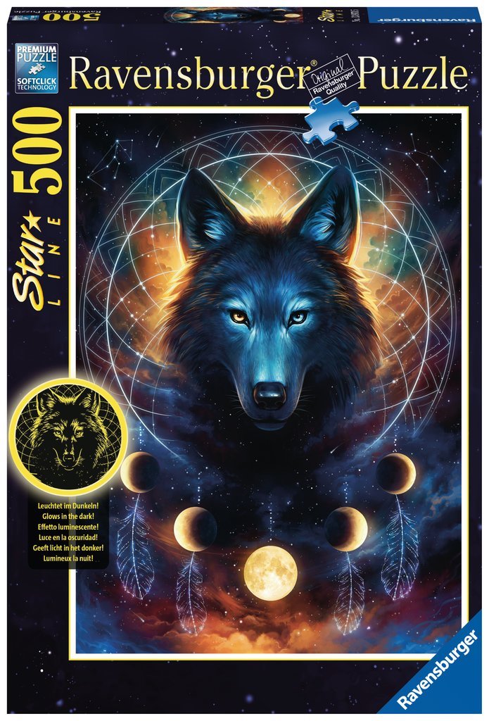 RAVENSBURGER Svítící puzzle Měsíční vlk 500 dílků
