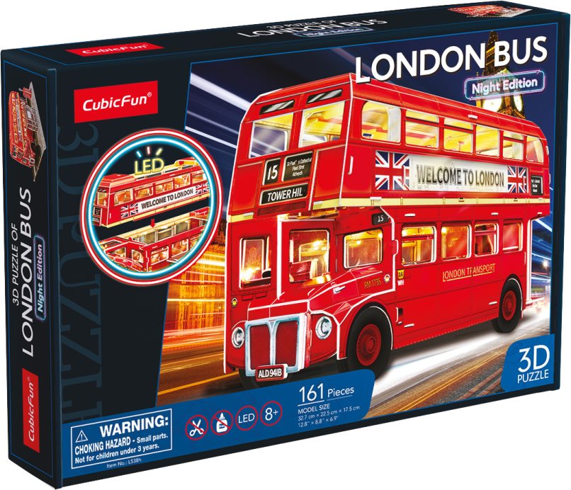 Svítící 3D puzzle CUBICFUN Noční edice LED: Londýnský autobus 161 dílků