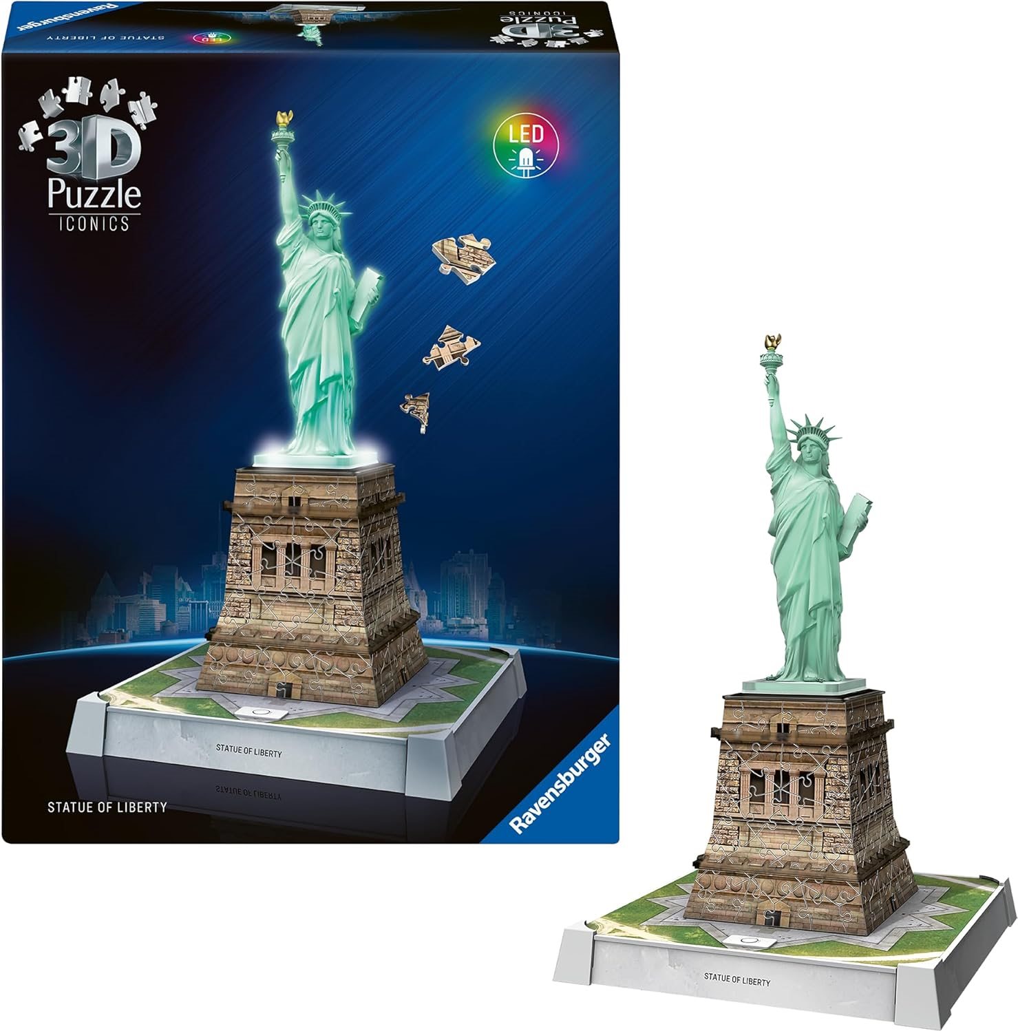 Svítící 3D puzzle Ravensburger Iconics: Socha Svobody (Noční edice) 128 dílků